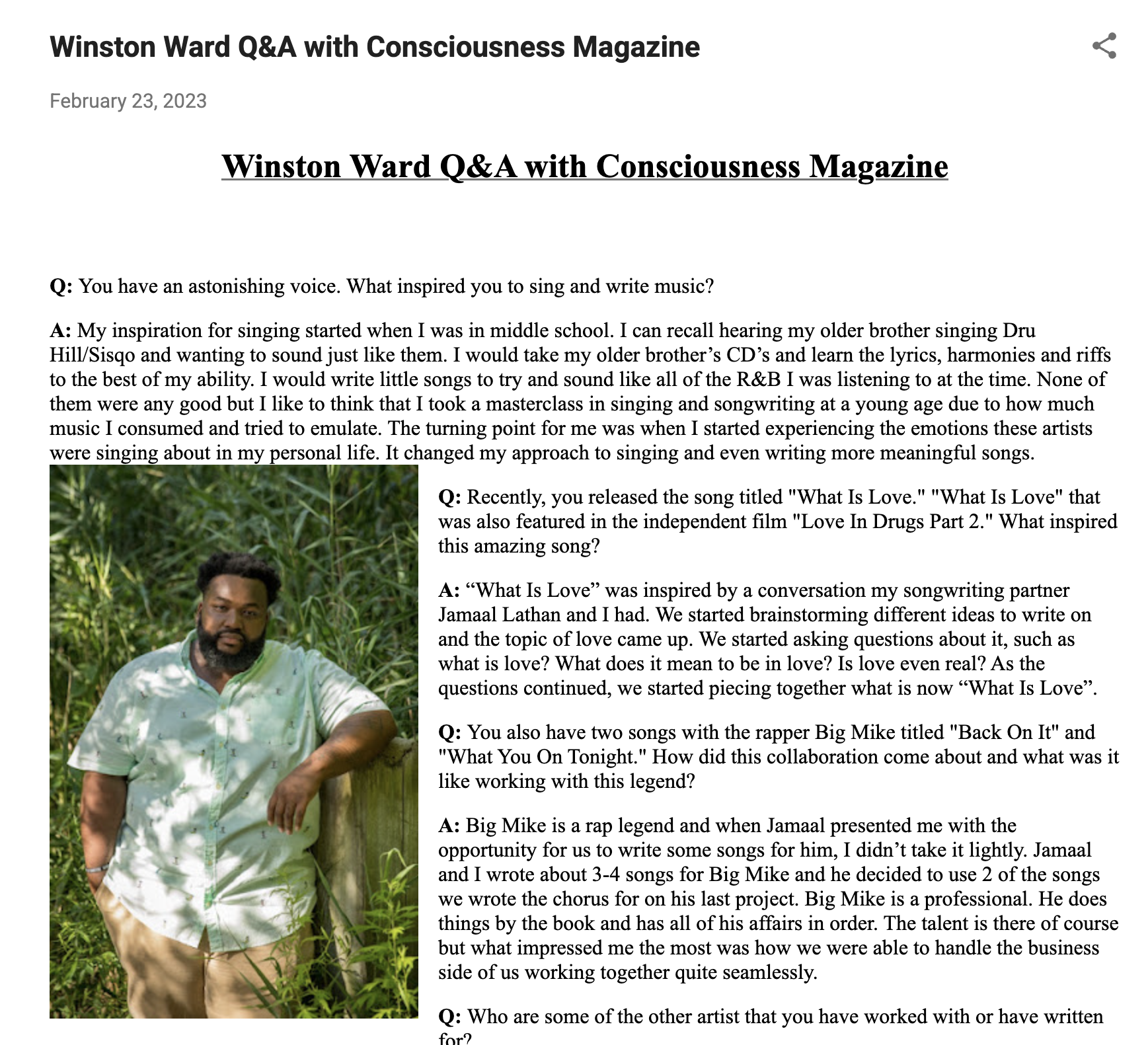 Consciousness Magazine Q&A